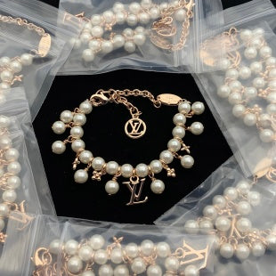 Fashion Charm Link Bracelet with Bee, Pearl, and Clover Chains