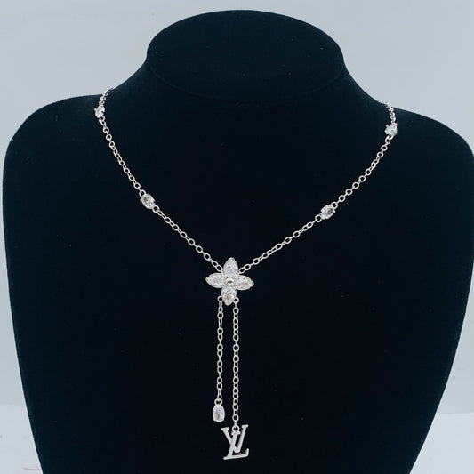 • Designer Inspired Layered Clover & Initial Station Necklace